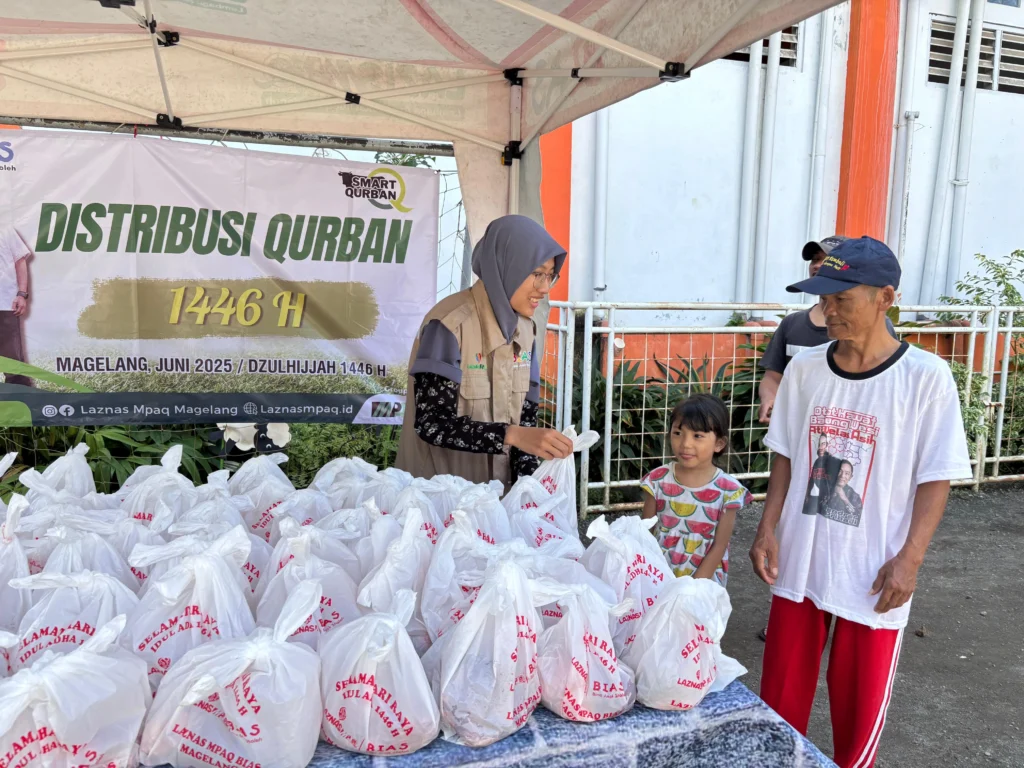 Melalui program Smart Qurban 1446 H, kami menjembatani kepedulian para pekurban kepada mereka yang tinggal jauh dari akses dan perhatian. Alhamdulillah Laznas MPAQ Magelang menyalurkan Qurban sebanyak 26 SK (setara kambing) yang dilaksanakan pada Jum’at, 06 Juni 2025, dan Sabtu, 07 Juni 2025. Dengan jumlah penerima manfaat 475 jiwa, termasuk anak yatim, dhuafa, fii sabilillah, fakir misikin, dan mualaf. Lokasi penyembelihan dibagi menjadi (06/06) tiga titik lokasi Pelosok Negeri (Dsn. Babadan, Ngandong, dan Jagalan), (07/06) di Kota Magelang, Kab. Magelang, Muntilan, dan Temanggung.